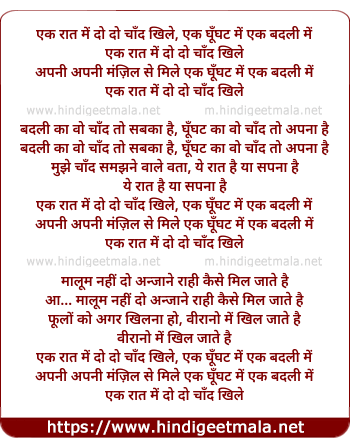 Lyrics of Ek Rat Me Do Do Chand Khile - एक रात में दो दो चाँद खिले