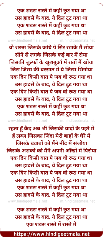 Lyrics of Ek Shaks Raste Me Kahee Chhut Gaya Tha - एक शख्स रास्ते में कहीं छुट गया था