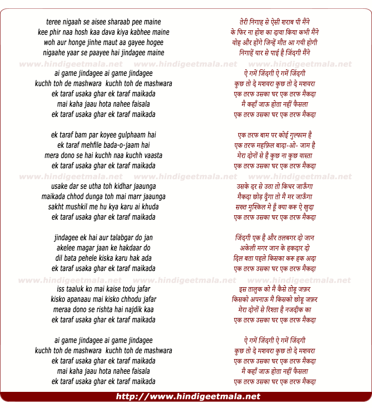 "usake dar se utha to kidhar jaaunga maikada chhod dunga to main marr jaaunga