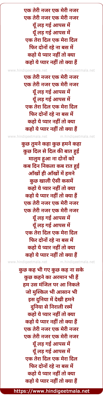 Lyrics of Ek Teri Nazar Ek Meri - एक तेरी नजर एक मेरी