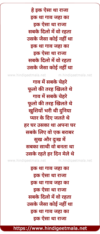 Lyrics of Ek Tha Raja, Sabke Dilo Me Vo Rahta - एक था राजा, सबके दिलो में वो रहता