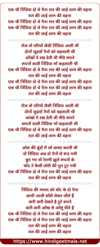 Lyrics of Ek Thi Nindiya Do The Naina - एक थी निंदिया दो थे नैना