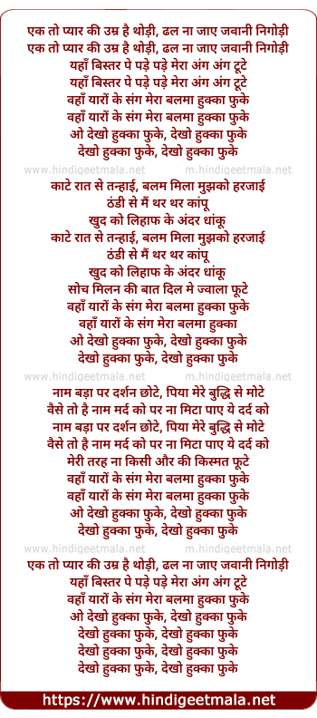 Lyrics of Ek To Pyar Ki Umar Hai - एक तो प्यार की उम्र है
