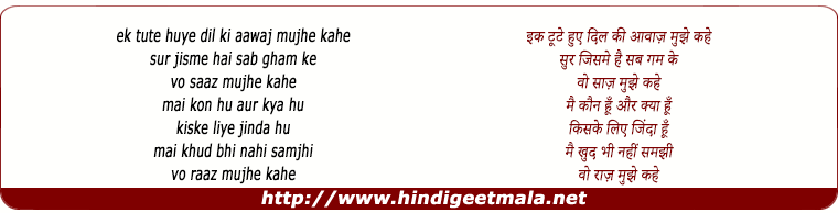Lyrics of Ek Tute Huye Dil Ki - इक टूटे हुए दिल की