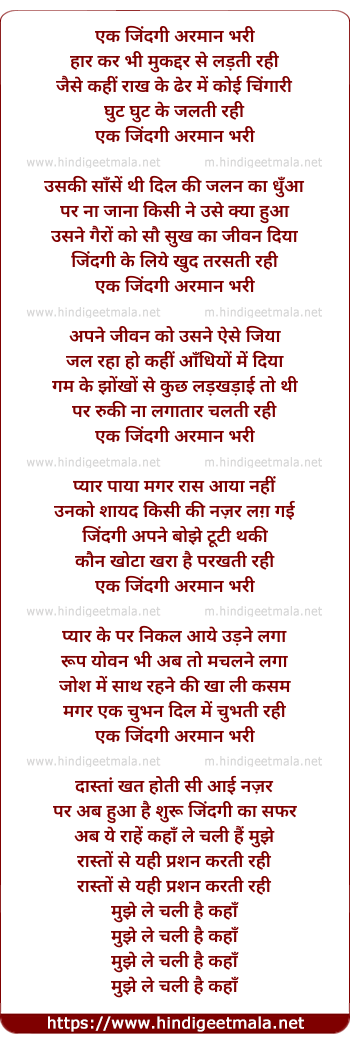 Lyrics of Ek Zindagi Armaan Bhari - एक जिंदगी अरमान भरी