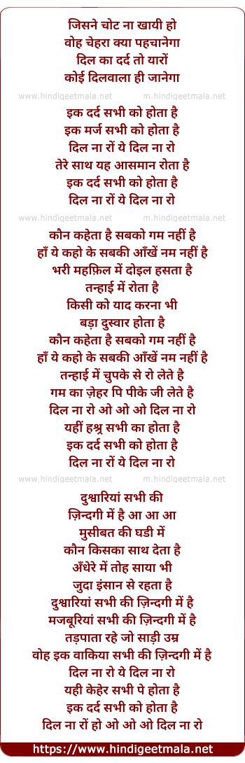 Lyrics of Ekk Dard Sabhi Ko Hota Hai - जिसने चोट ना खायी हो