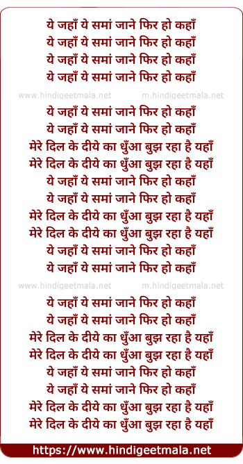 Lyrics of Eternal Fire (Yeh Jahan Yeh Sama) - ये जहाँ ये समां जाने फिर हो कहाँ