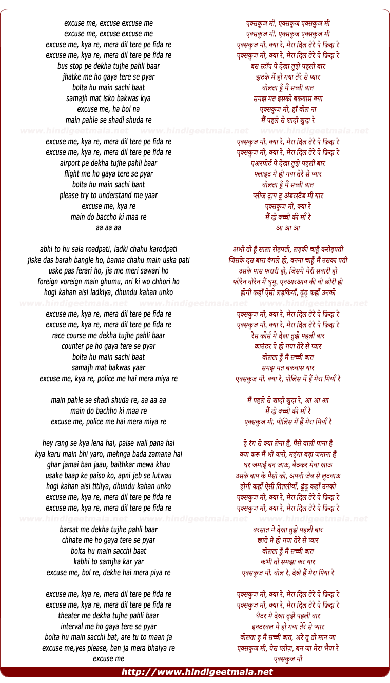 Lyrics of Excuse Me, Kya Re (Remix) - एक्सकुज मी क्या रे