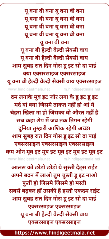 Lyrics of Exercise - एक्सरसाइज