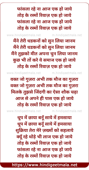 Lyrics of Faasla Rahe Na Aaj Ek Ho Jaaye - फांसला रहे ना आज एक हो जाये