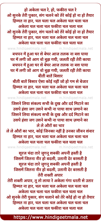 akela chal chala chal fakira chal chala chal