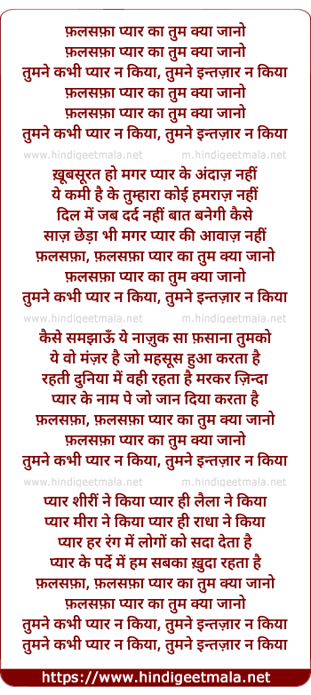 Falasafaa Pyaar Kaa Tum Kyaa Jaano - फ़लसफ़ा प्यार का तुम क्या जानो