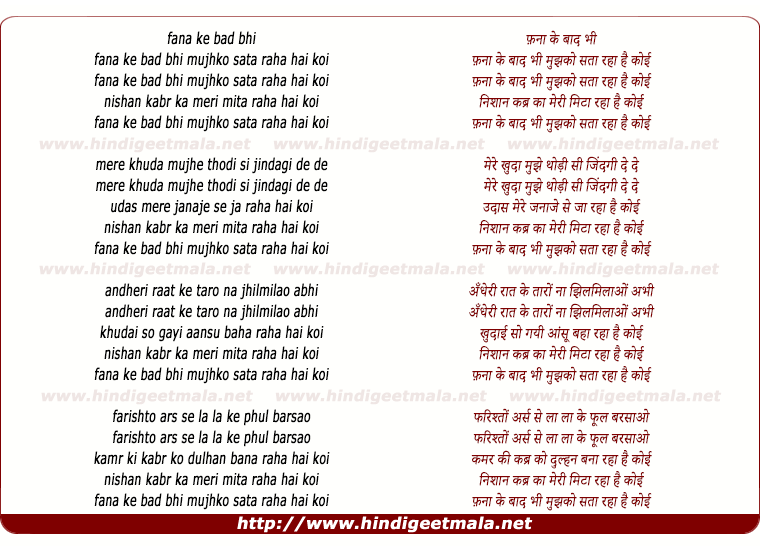 Lyrics of Fana Ke Baad Bhi - फ़ना के बाद भी
