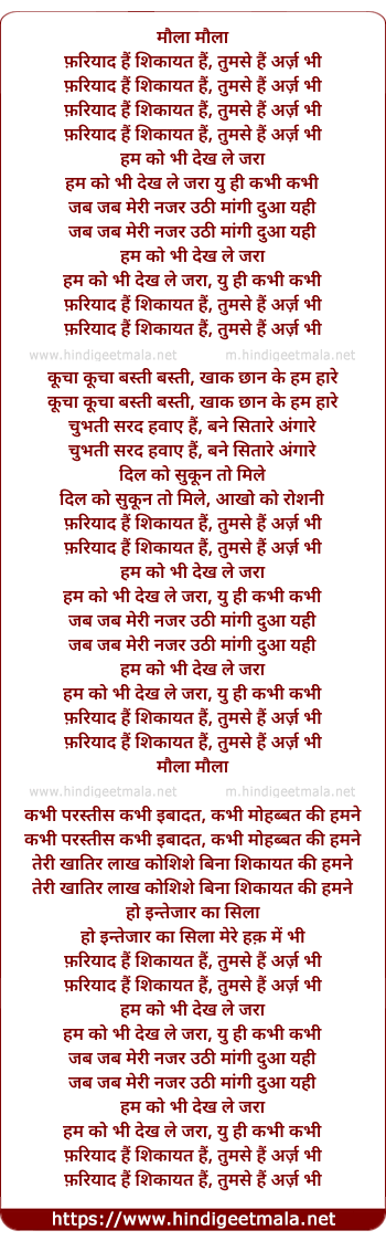 Lyrics of Fariyaad Hai Shikayat Hai - फ़रियाद हैं शिकायत हैं