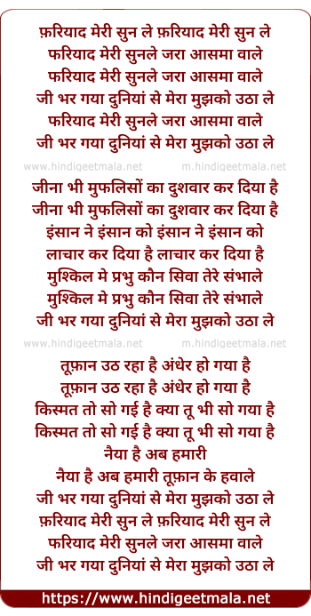 Lyrics of Fariyad Meri Sun Le - फ़रियाद मेरी सुन ले फ़रियाद मेरी सुन ले