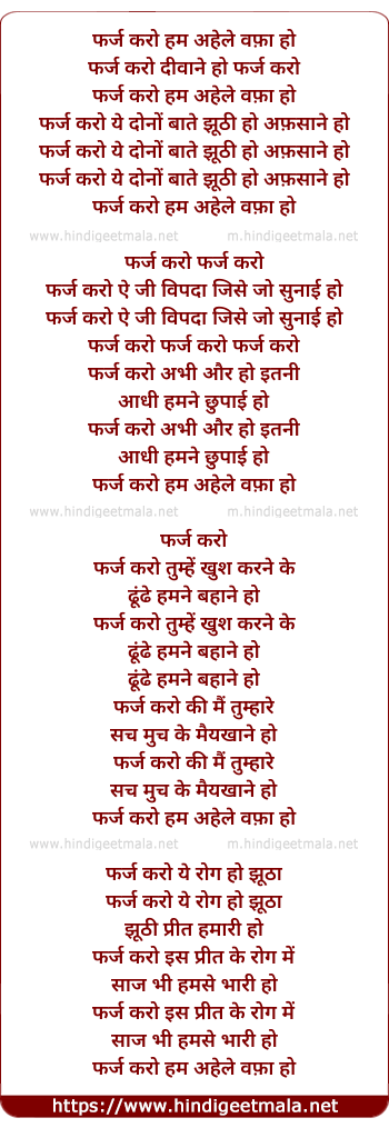 Lyrics of Farz Karo Hum Ahele Wafa - फर्ज करो हम अहेले वफ़ा हो