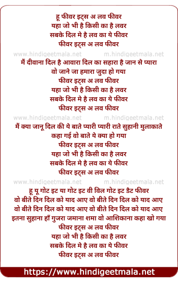 Lyrics of Fever Its Love Fever - फीवर इट्स लव फीवर