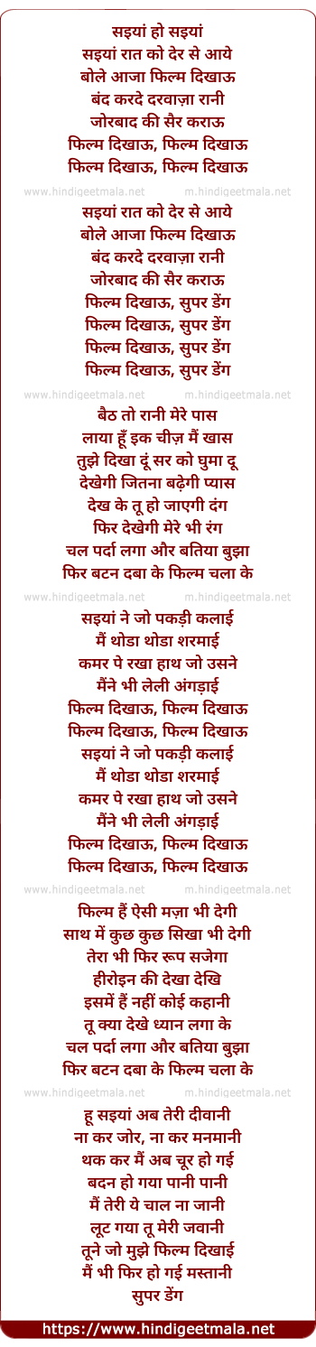 Filmy Saiyaan - सइयां हो सइयां