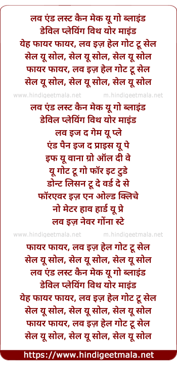 Lyrics of Fire (English Version) - लव एंड लस्ट कैन मेक यू गो ब्लाइंड