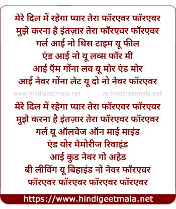 Lyrics of Pyar Tera Forever - प्यार तेरा फॉरएवर