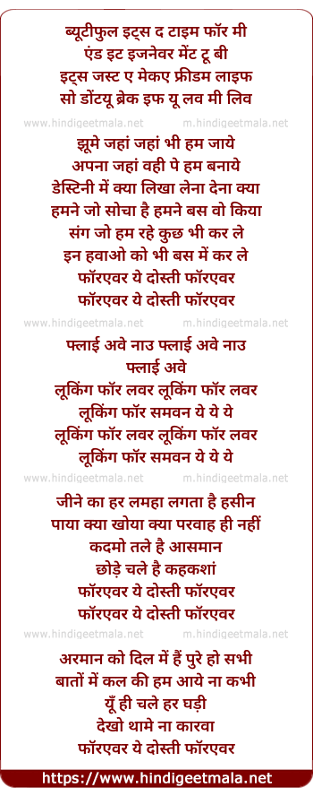 Lyrics of Forever Yeh Dosti Forever - फॉरएवर ये दोस्ती फॉरएवर