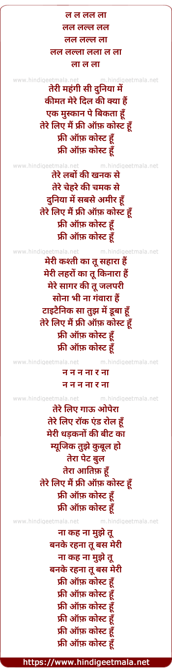 Lyrics of Free Of Cost - फ्री ऑफ़ कोस्ट