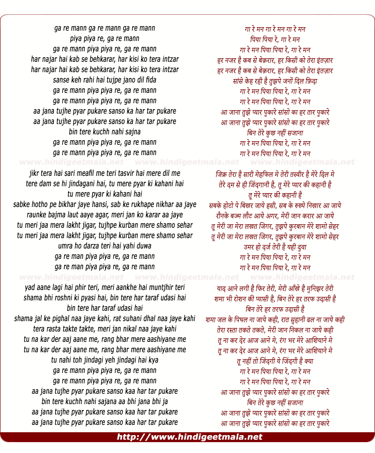 Lyrics of Ga Re Man Piya Piya Re - गा रे मन पिया पिया रे