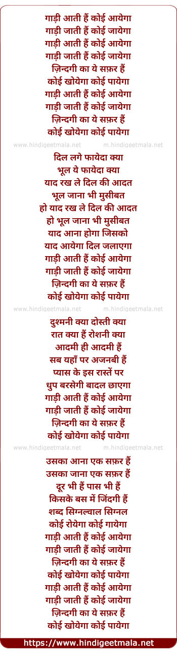 Lyrics of Gaadi Aati Hai - गाड़ी आती हैं कोई आयेगा
