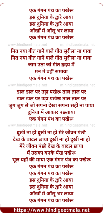 Lyrics of Gagan Panth Ka Ek Pakheru Duniya Me - गंगन पंथ का एक पखेरू दुनिया में