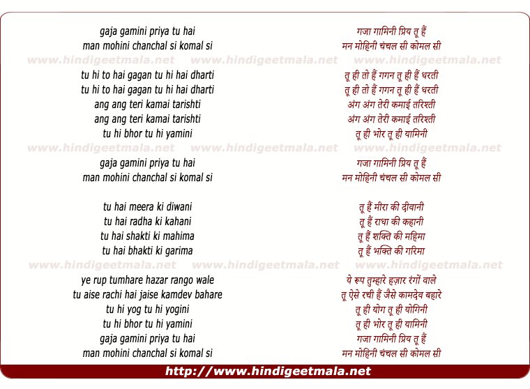 Lyrics of Gaja Gamini Tu Hai Man Mohini - गजा गामिनी तू है मोहिनी