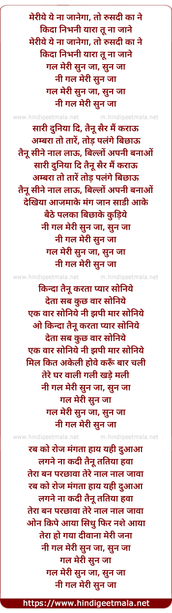 Lyrics of Gal Meri Sun Jaa - गल मेरी सुन जा