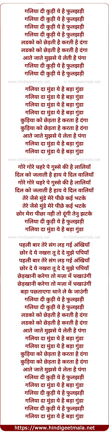 Lyrics of Galiya Di Kuri Ye Hai Phuljadi - गलिया दी कुड़ी ये है फुलझड़ी