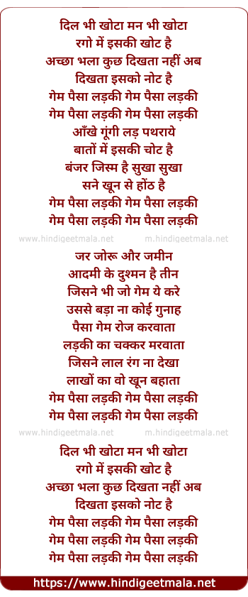 Lyrics of Game Paisa Ladki - गेम पैसा लड़की