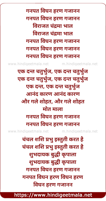 Lyrics of Ganesh Chaturthi - गनपत विघन हरण गजानन