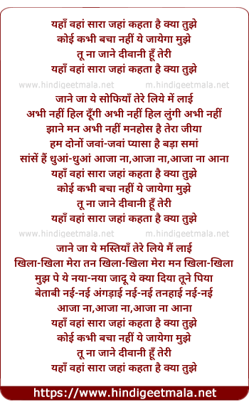 Lyrics of Gangster 420 - यहाँ वहां सारा जहां कहता है क्या तुझे