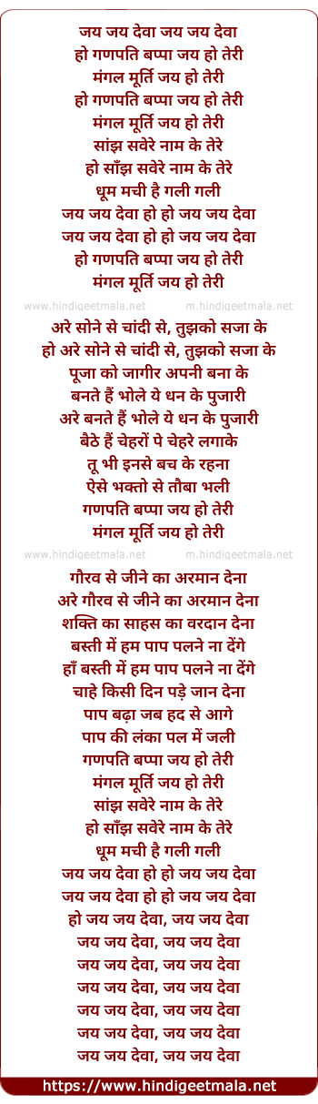 Lyrics of Ganpati - जय जय देवा जय जय देवा