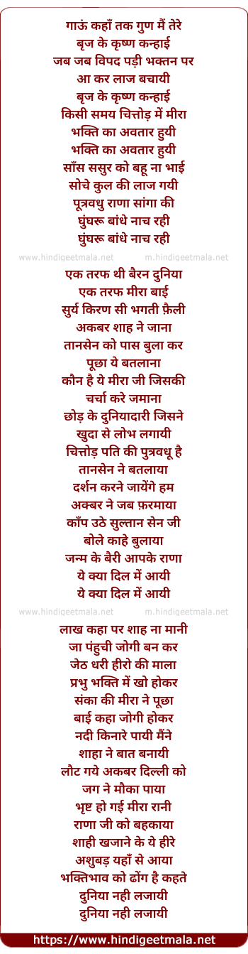 Lyrics of Gaon Kahaan Tak Gun Main Tere - गाऊं कहाँ तक गुण मैं तेरे