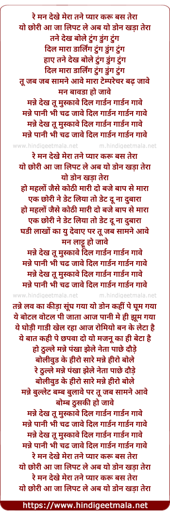 re man dekhe tera tane pyar karoon bas tera