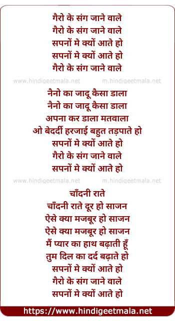Lyrics of Gairon Ke Sang Jaane Wale - गैरो के संग जाने वाले