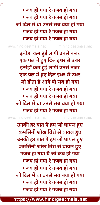 Lyrics of Gazab Ho Gaya Re - गजब हो गया रे गजब हो गया
