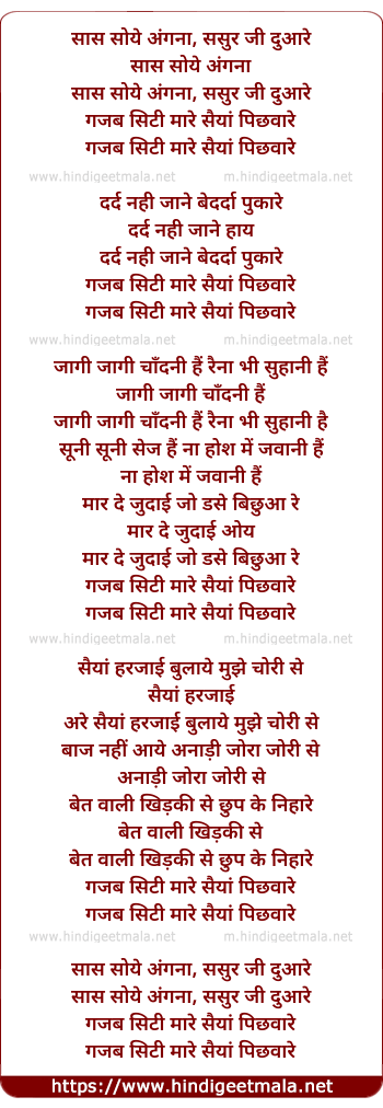 Lyrics of Gazab Siti Mare - गजब सिटी मारे
