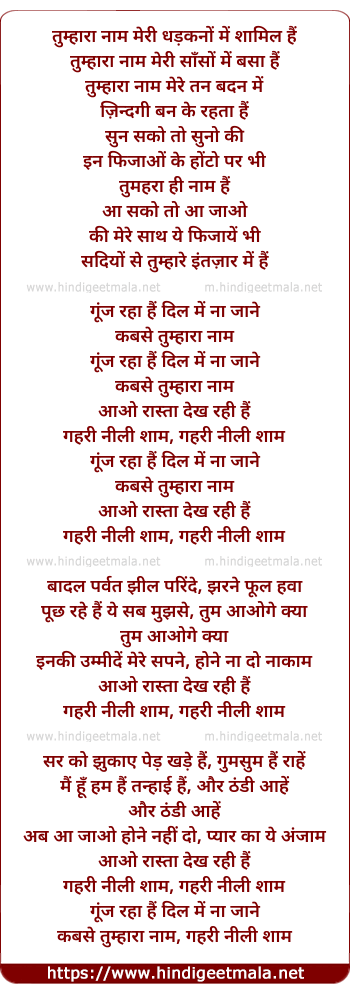 Lyrics of Gehri Neeli Shaam - तुम्हारा नाम मेरी धड़कनों में शामिल हैं