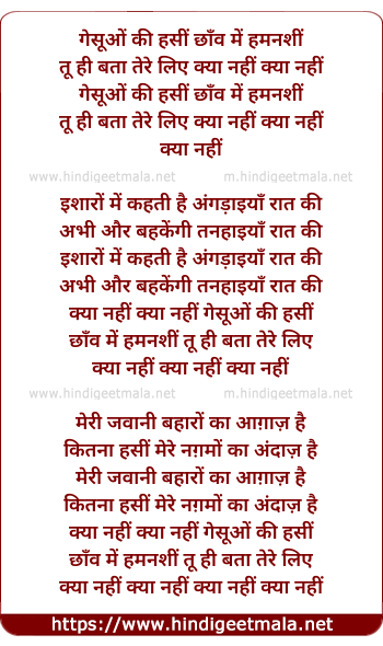 Lyrics of Gesuo Ki Hasin Chhao Me