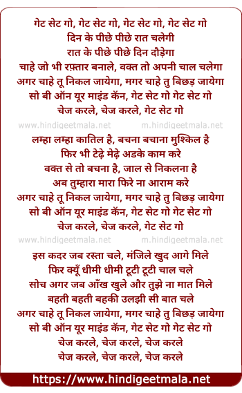 Poetic Translation - Lyrics of Get Set Go (Club Mix) - गेट सेट गो, गेट सेट गो, गेट सेट गो, गेट सेट गो