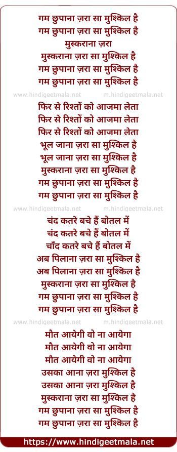 Lyrics of Gham Chhupana Zarasa - गम छुपाना ज़रा सा मुश्किल है