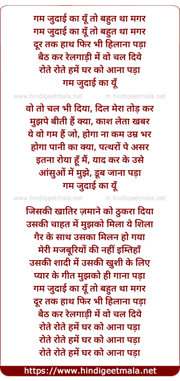 Lyrics of Gham Judai Ka - गम जुदाई का यूँ तो बहुत था मगर