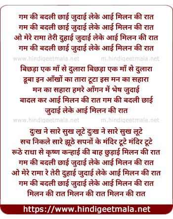 Lyrics of Gam Ki Badli Chhayi Judayi Leke Aayi - गम की बदली छाई जुदाई लेके आई