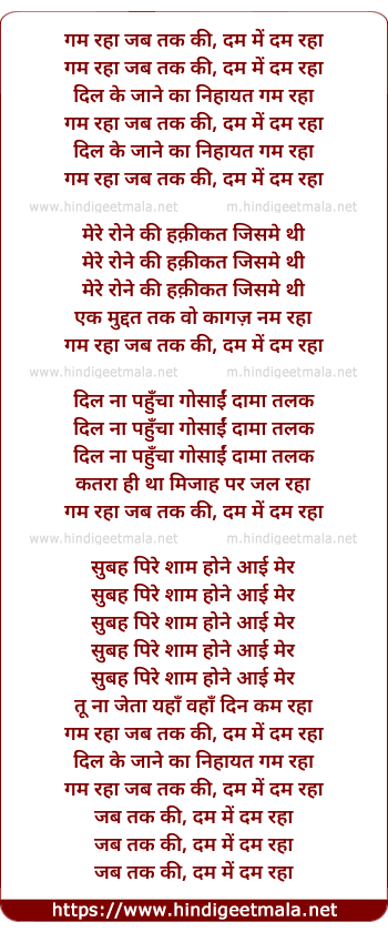 Lyrics of Gham Raha Jab Tak Ke Dam Mai - गम रहा जब तक की, दम में दम रहा