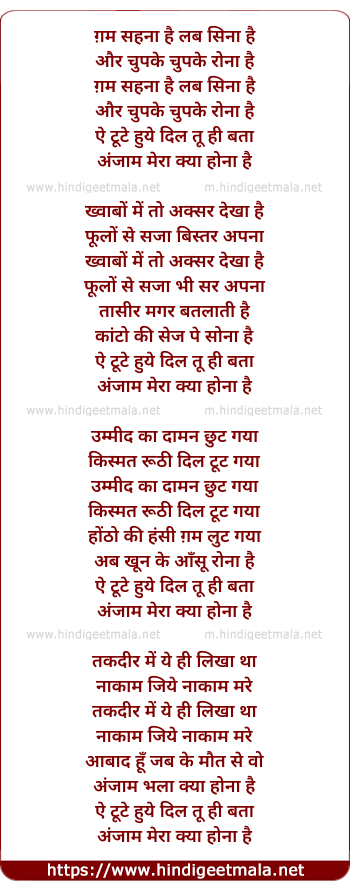 Lyrics of Gham Sehna Hai Lab Seena Hai - ग़म सहना है लब सिना है