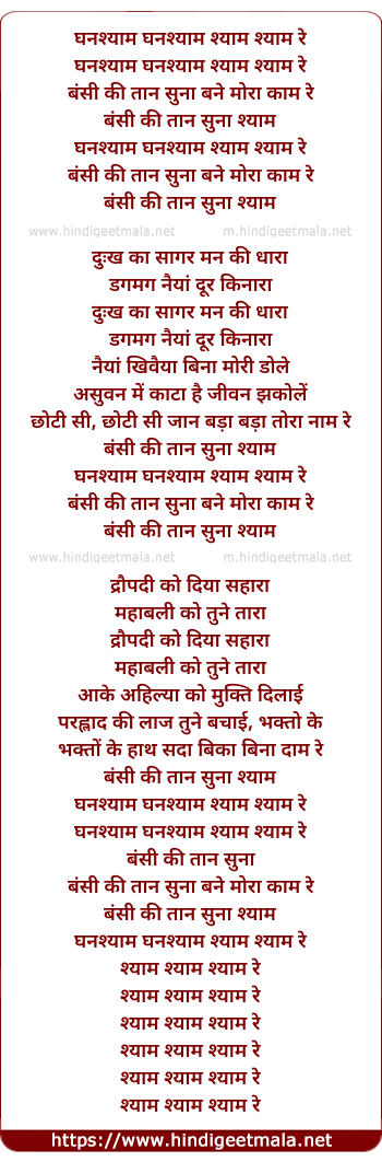 Lyrics of Ghanshyam Ghanshyam Shyam Shyam Re - घनश्याम घनश्याम श्याम श्याम रे